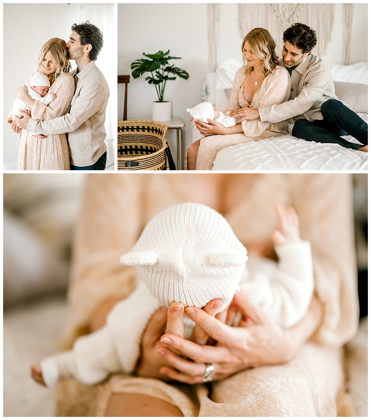 Most sessions last about 1–2 hours, giving plenty of time for feedings, diaper changes, and soothing. There’s no rush; babies set the pace. I’ll arrive with gentle direction and a focus on natural light, guiding you into the best spots in your home — often the nursery, master bedroom, or living room.