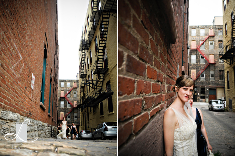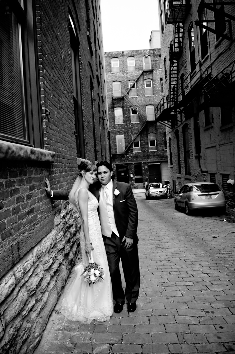 This day was so much fun I was sorry to see it end! We all had a blast casually driving around Minneapolis and St. Paul, stopping wherever we wanted and grabbing candids of the entire wedding party! Ange and Jeremy was relaxed, loving, and just out to have a great time. The city landscape was perfect for the setting of their wedding, which detailed their engagements and dating story from when they met back in college. Congratulations Ange and Jeremy,you were amazing!
